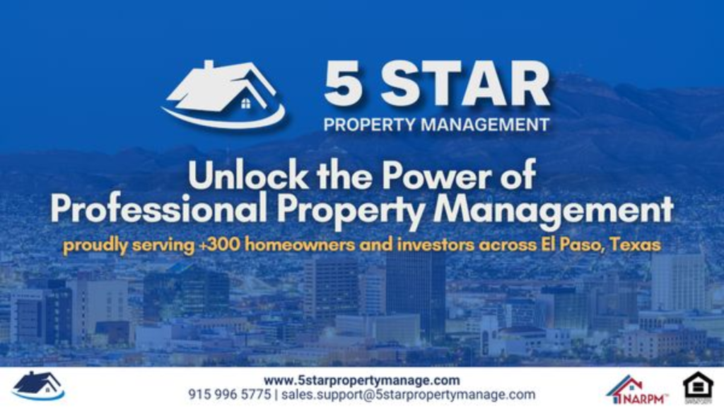 5 Star Management is a trusted property management company in El Paso, TX, known for its commitment to excellence and customer satisfaction. The company specializes in managing high-quality residential properties, including single-family homes, townhouses, and apartments. With a reputation for professionalism, reliability, and exceptional service, 5-Star Management has earned a loyal following among both renters and property owners.